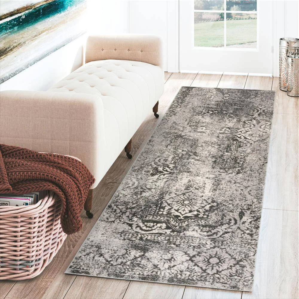Apollo 7 Carbon 2 ft. 3 in. x 7 ft. 5 in. Distressed Patterned Indoor Runner Rug by Addison Rugs