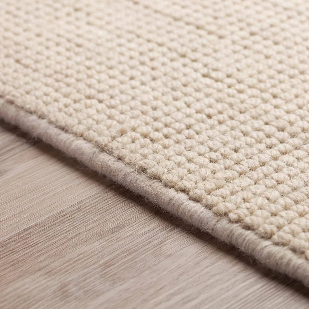 This neutral 100% hand-woven area rug can be paired with any of your home style themes. Experience heirloom quality, subtle texture in this effortless yet sophisticated design. Vacuum rugs regularly. Set the vacuum height gauge to its highest setting. Blot spills immediately. Professional rug dry cleaning only.